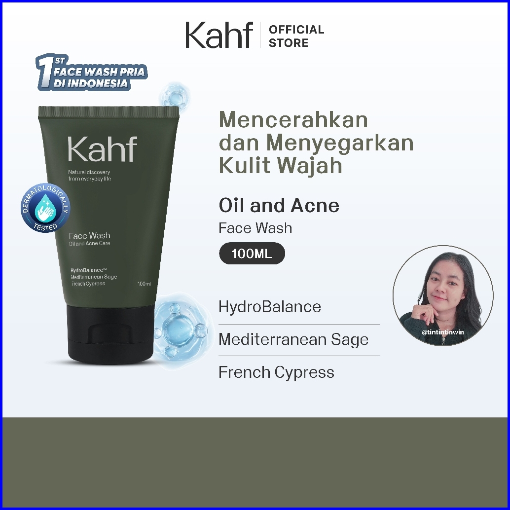 Tintintinwin S Picks Kahf Face Wash Oil And Acne Care 100 Ml - Sabun Cuci Muka Pria Untuk Kulit Berminyak Dan Berjerawat