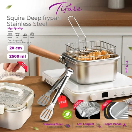 GRATIS ONGKIR PANCI GORENGAN Tifale Squira Deep Frypan Stainless Steel Panci Kotak Anti Lengket