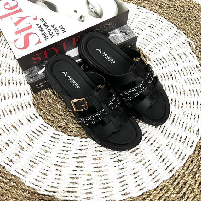 Adiero Sandal Slop Wanita Platform Sendal Rajut Wedges