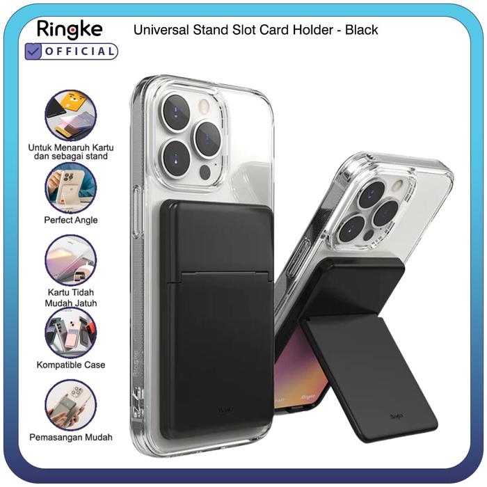 RINGKE COMPATIBLE FOR UNIVERSAL STAND SLOT CARD HOLDER BLACK DUDUKAN DESKTOP UNIVERSAL TATAKAN SENDERAN HP FOLDABLE TEMPAT KARTU CARD HOLDER