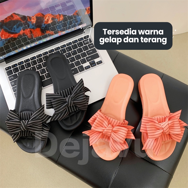 Dejavu Sendal Wanita Slop Jelly Kekinian Sendal Korea Pita Karet Rumah Flat Anti Slip HSN119
