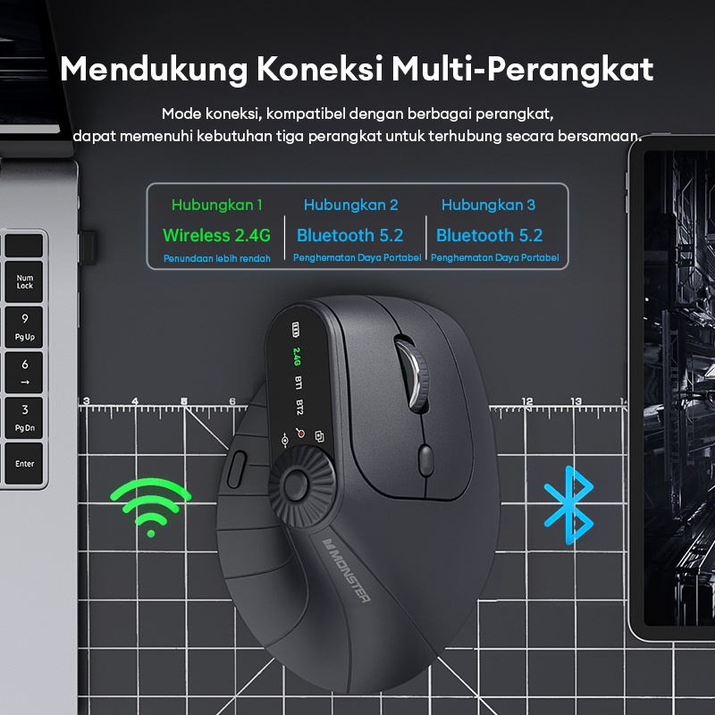 [Mall] Monster M2 PRO 2.4G Mouse Wireless Bluetooth Vertical Ergonomic Dual Mode 2.4G+BT Four Dpi Switch 500mAh Large Battery