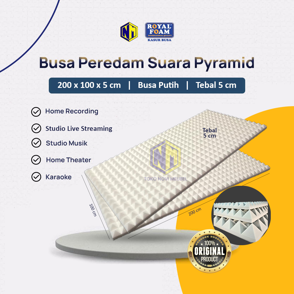 BUSA PEREDAM SUARA MODEL PYRAMID PUTIH 200X100 CM / PEREDAM SUARA RUANGAN TEBAL 5 CM