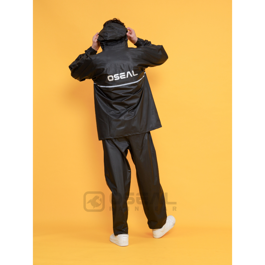 Jas Hujan OSEAL Full Seal Raincoat Mantel Pria Wanita Dewasa Shine Series Hitam