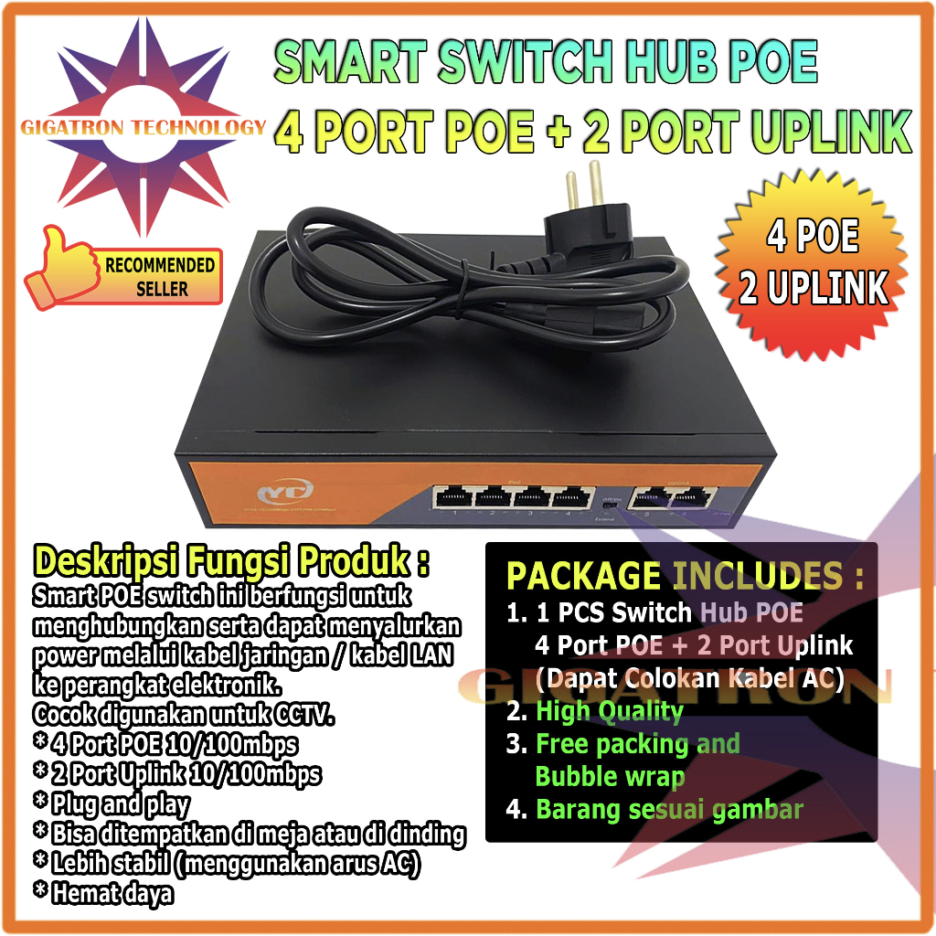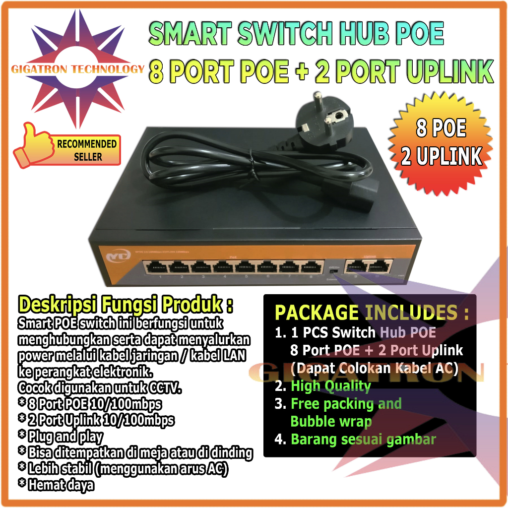 [Mall] Switch Hub POE 8 Port 2 Uplink / Poe Switch 8+2 Ports 10/100 Mbps / Switch POE Support CCTV Power DC 52V / 52 Volt