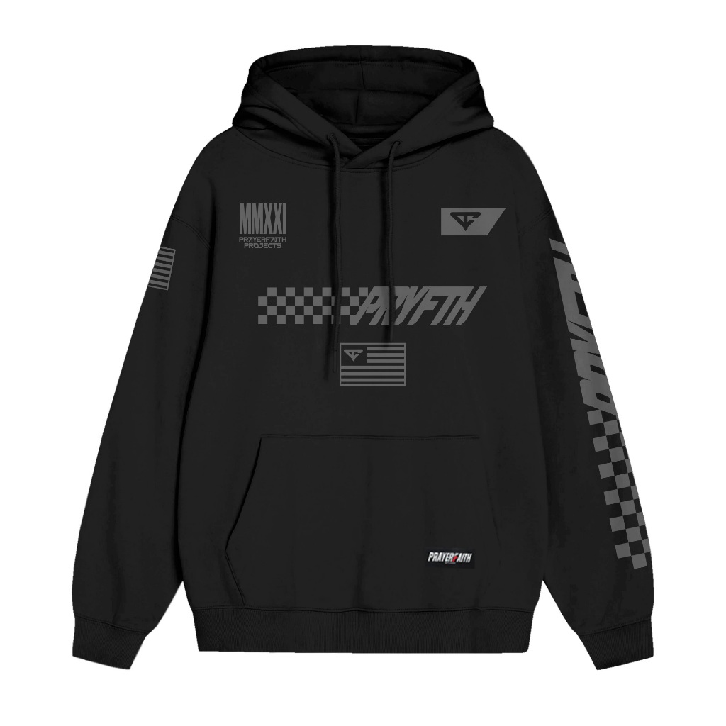 PRAYERFAITH - Hoodie Racing Projeck Black Edition Bahan Fleece Lembut