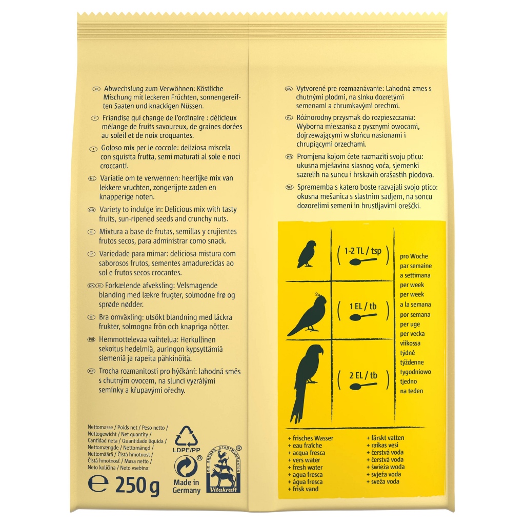 Vitakraft Fruit Cocktail 250g – Snack Buah, Biji & Kacang Premium untuk Parrot, Lovebird & Burung Paruh Besar
