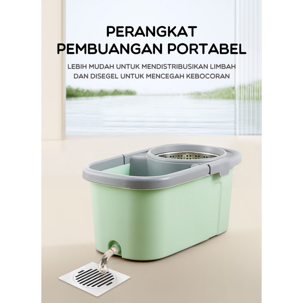 Bonbox Alat Pel Lantai Ember 2in1 DAPAT 2 KAIN PEL Ember Spin Mop Mencuci Membilas Pembuang Air Otomatis BCT3612B