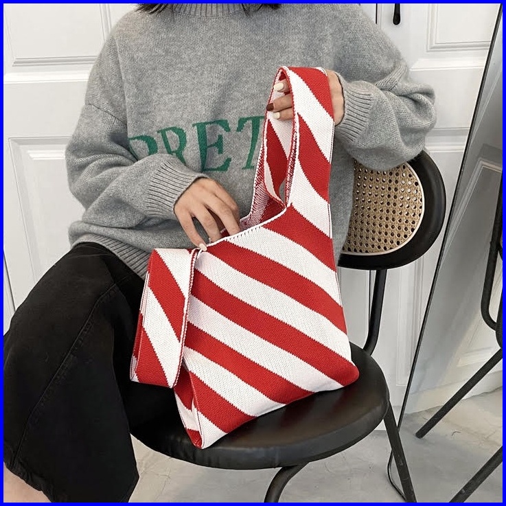 Clearance Dalmi Chloe Handmade Tote Bag Korean Look Tas Jinjing Bahan Rajut Premium Stretchable - Ch897