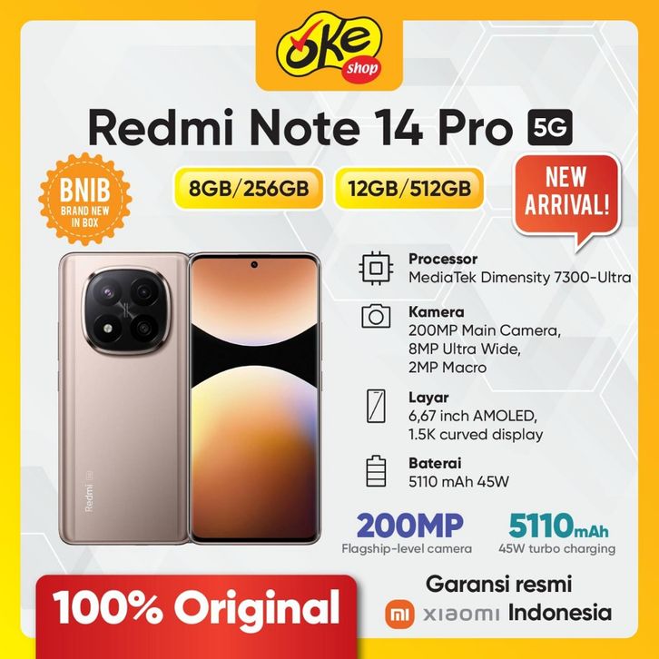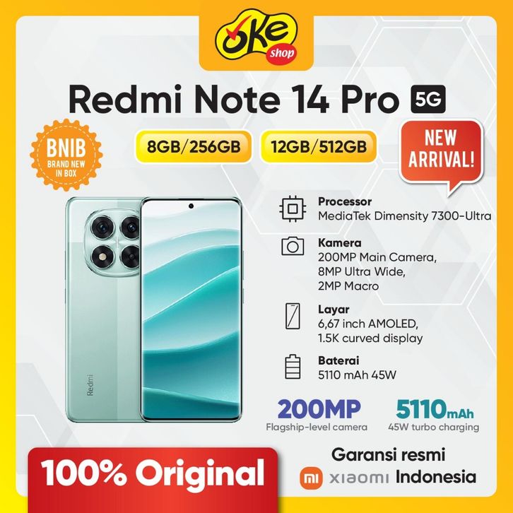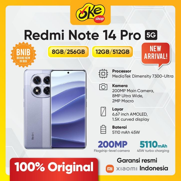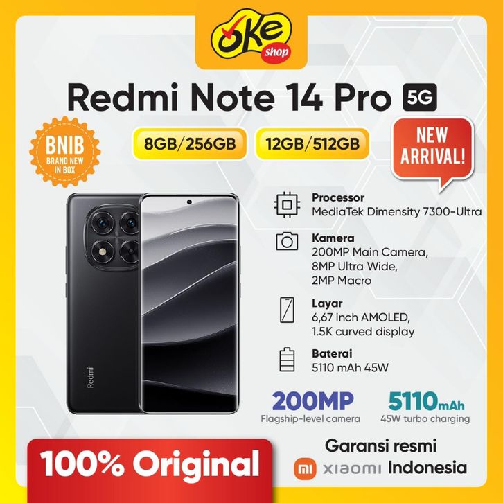 Xiaomi Redmi Note 14 Pro 5g | 200mp Ois Pro-grade Ai Camera System | Ip68 | Mediatek Dimensity 7300 Ultra Tanpa Dp