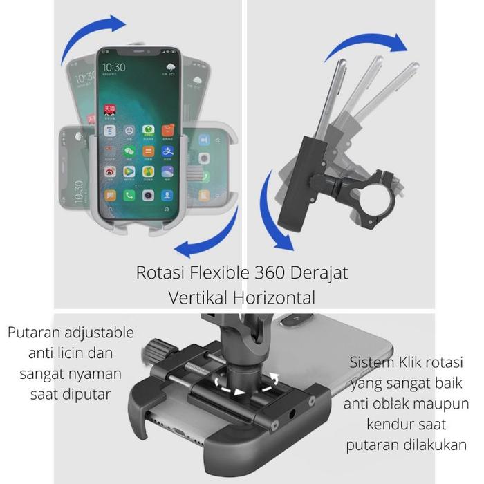 GUB P40 STAND PHONE HOLDER HP SEPEDA MOTOR STANG SPION DUDUKAN HP HAND