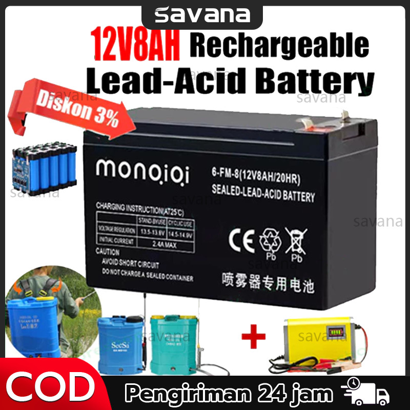 【SAVANA】aki Ups Vrla 12V 8Ah Suplai daya Komputer Baterai Aki Kering Sepeda Listrik Kering Sprayer Elektrik 12V 8AH KANE