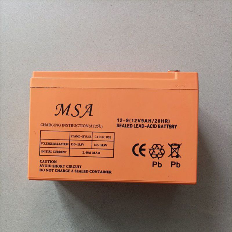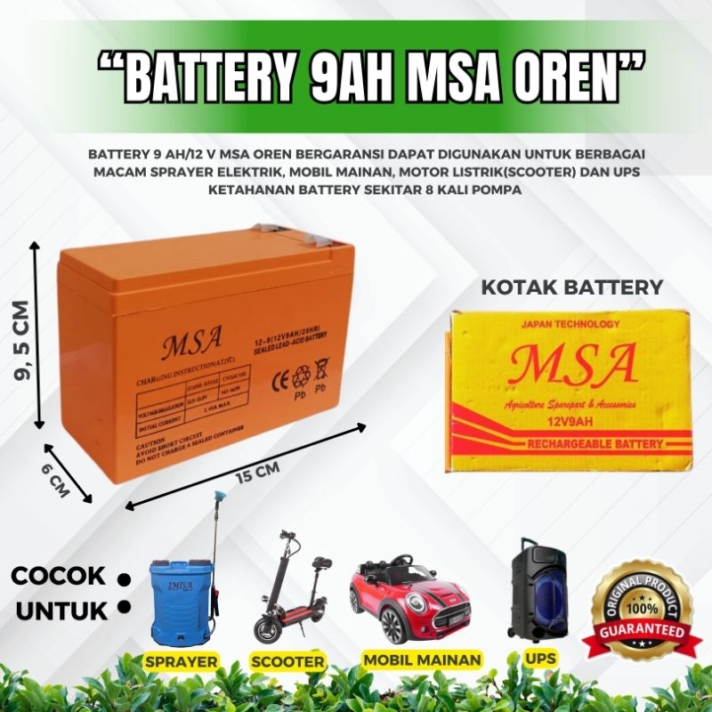 BATTERY 9AH MSA OREN( aki battery batre accu sprayer elektrik 12V 9AH (BERGARANSI
