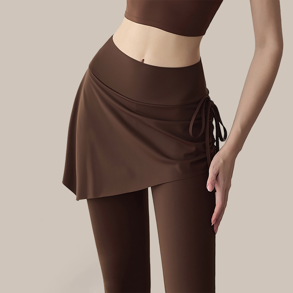 Terlaris YOBAO 2-in-1 Legging Rok Celana Olahraga Wanita Highwaist Skirt Pant Tali Serut Samping Celana Pilates Yoga