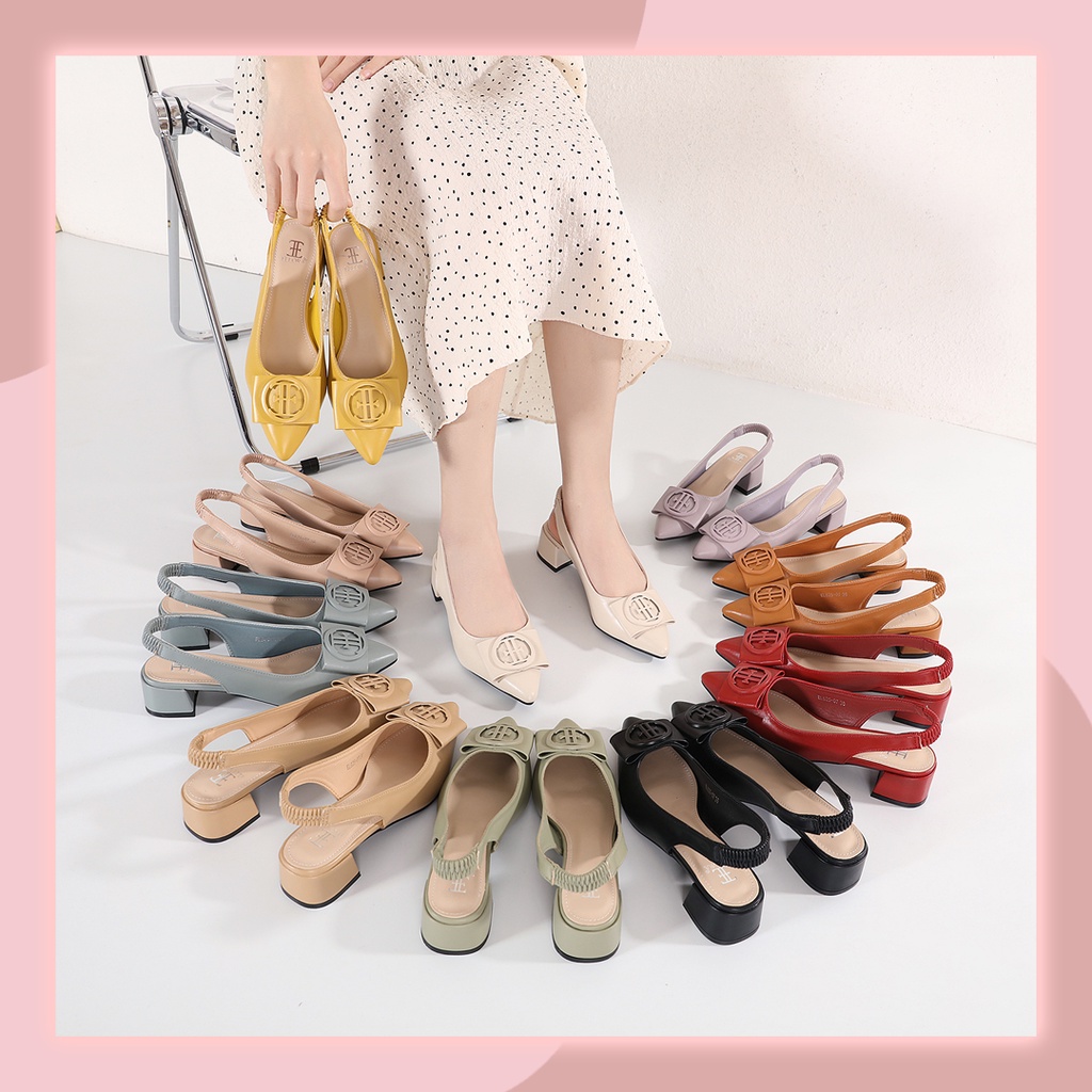 ELLORA EL 625-07 Sepatu Wanita Hak Chunky Heels Slingback Import 4cm