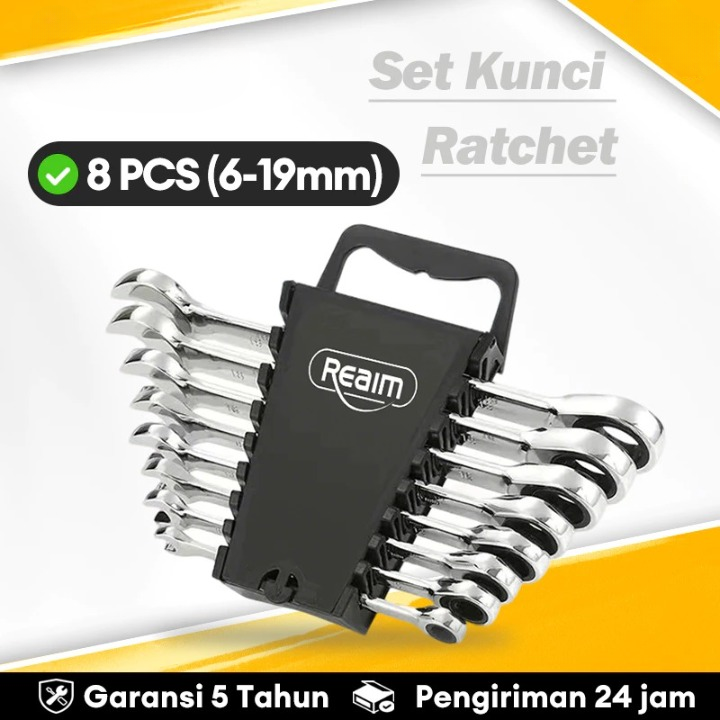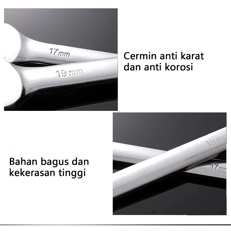 Kunci Ring Pas Set 8pcs Lengkap Kunci Pas Ring Set Kunci Kombinasi Spanner Wrench 6-19MM Spanner Set