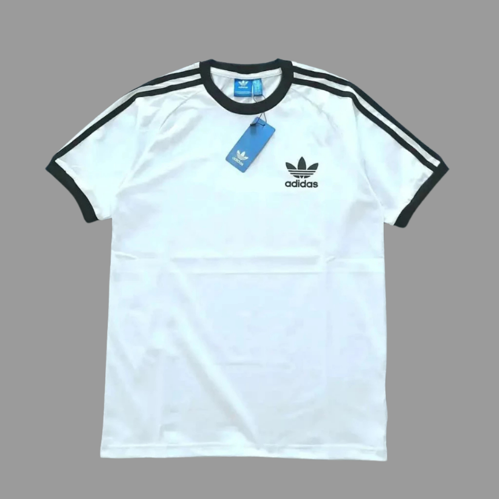 Kaos Sport Casual Cowok Cewek Strip Putih Premium