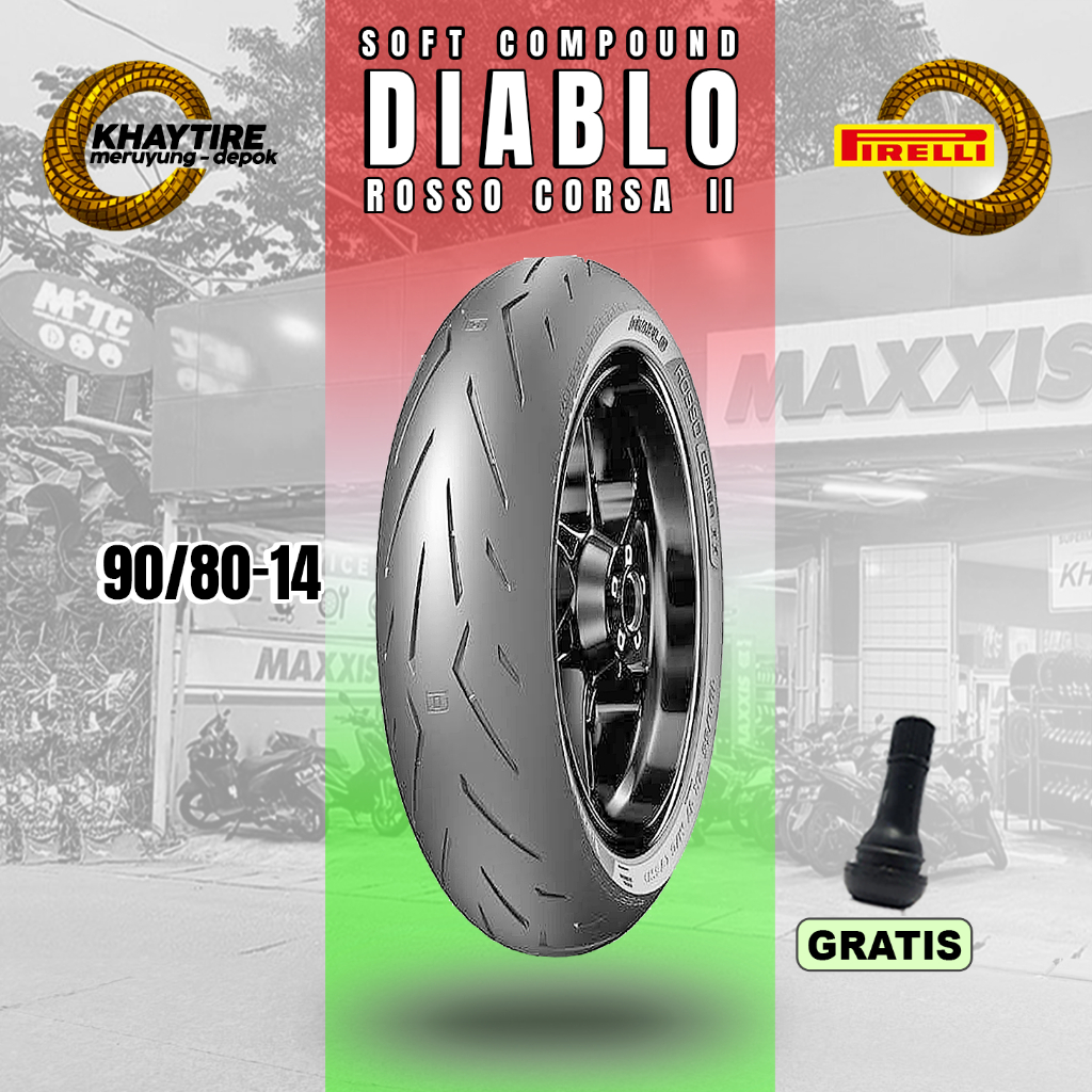 Ban Motor Matic Soft Compound PIRELLI DIABLO ROSSO CORSA II 90/80 Ring 14 Tubeless