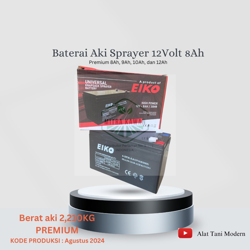 Baterai aki sprayer 8Ah 12volt EIKO DRAGON + BOX (semua merk sprayer)