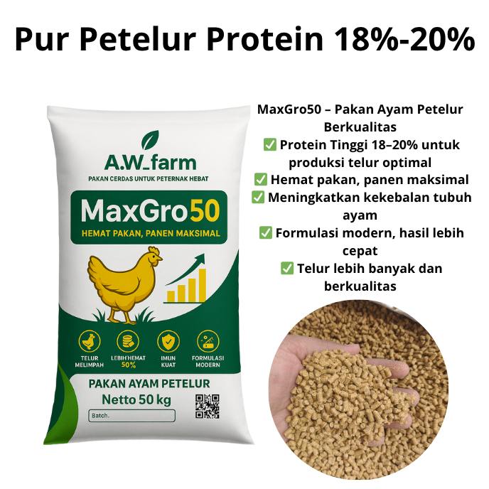Pakan Ayam Petelur MaxGro50 – Protein 18-20% Hemat Pakan, Telur Melimpah