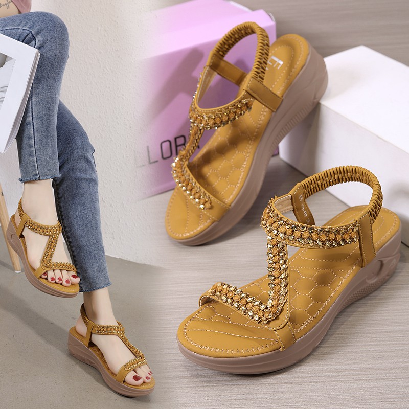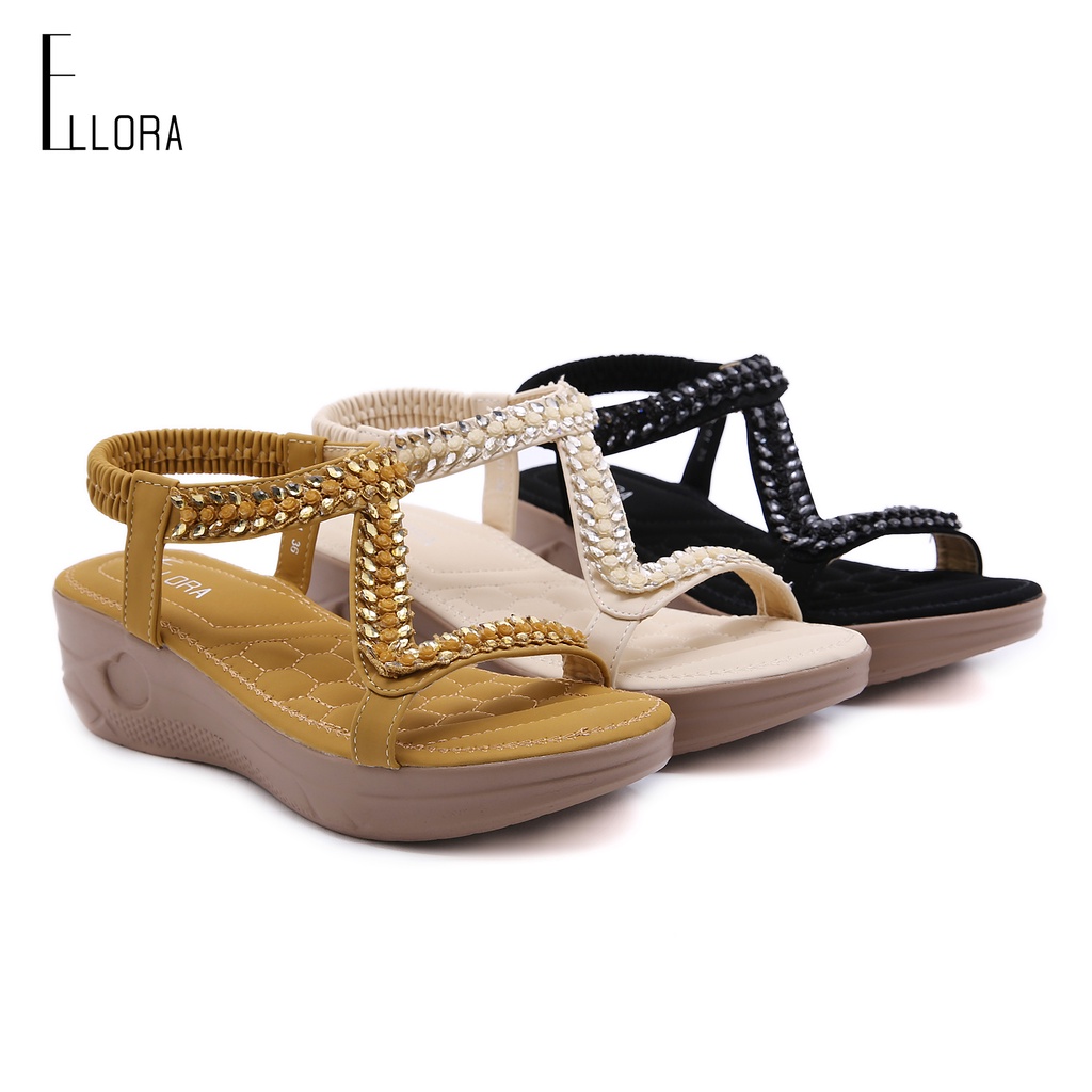 ELLORA EB330-01 Sandal Wedges Wanita Import 5cm