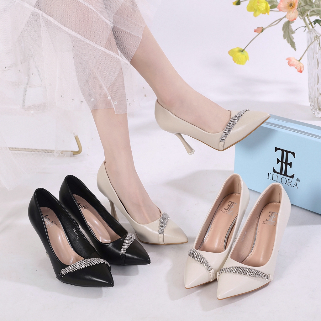 ELLORA ED-8745 Sepatu High Heels Wanita Kerja Stilleto Heels Import 9cm