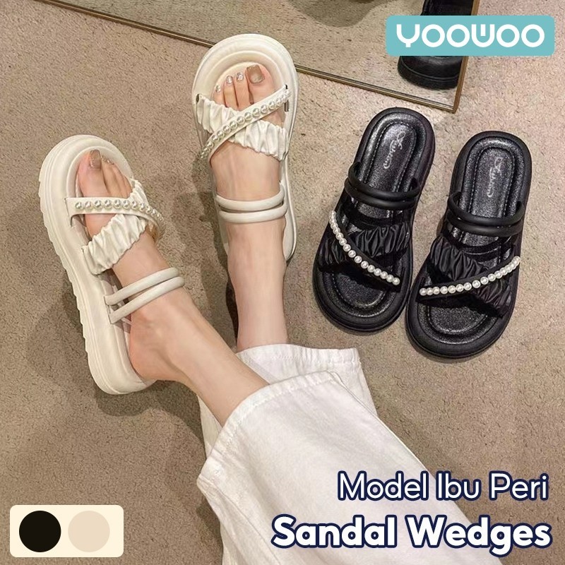 YooWoo Sandal Bersol Platform Untuk Wanita Modis Sandal Rumah Bersol Tebal Serbaguna Sandal Anti Selip Gaya Korea