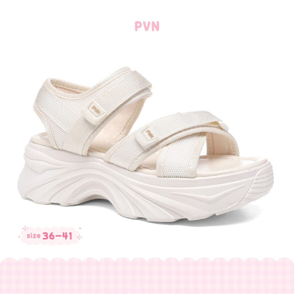 PVN Ryujin Sandal Wanita Tali Hitam Krem 216