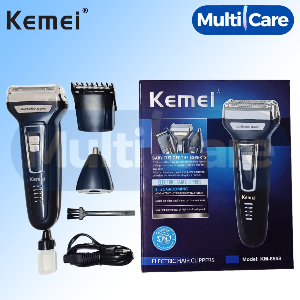 Kemei km 6558 Alat Mesin Cukur Jenggot Kumis Trimmer Wireless 3 in 1 Reachargeable