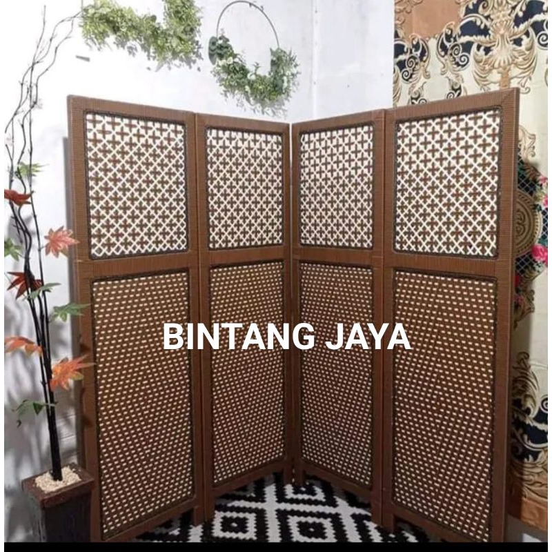 BEST SELLER Sketsel Ruangan Rotan Sintetis Pembatas Ruangan Motif Minimalis Murah