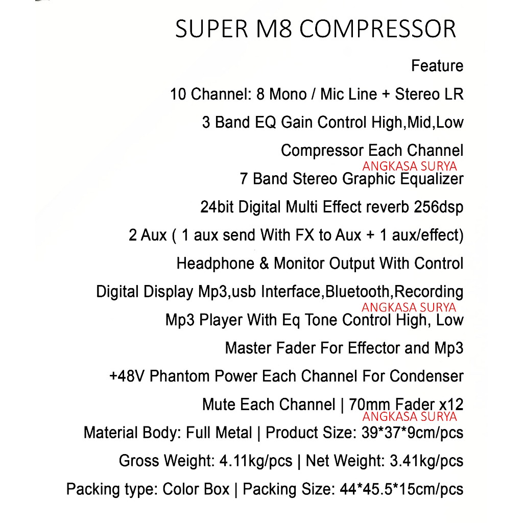 MIXER ASHLEY SUPER M8 COMPRESSOR ORIGINAL /MIXER AUDIO 8 CHANNEL SUPER M8 ORIGINAL ADA COMPRESSOR EQUALIZER