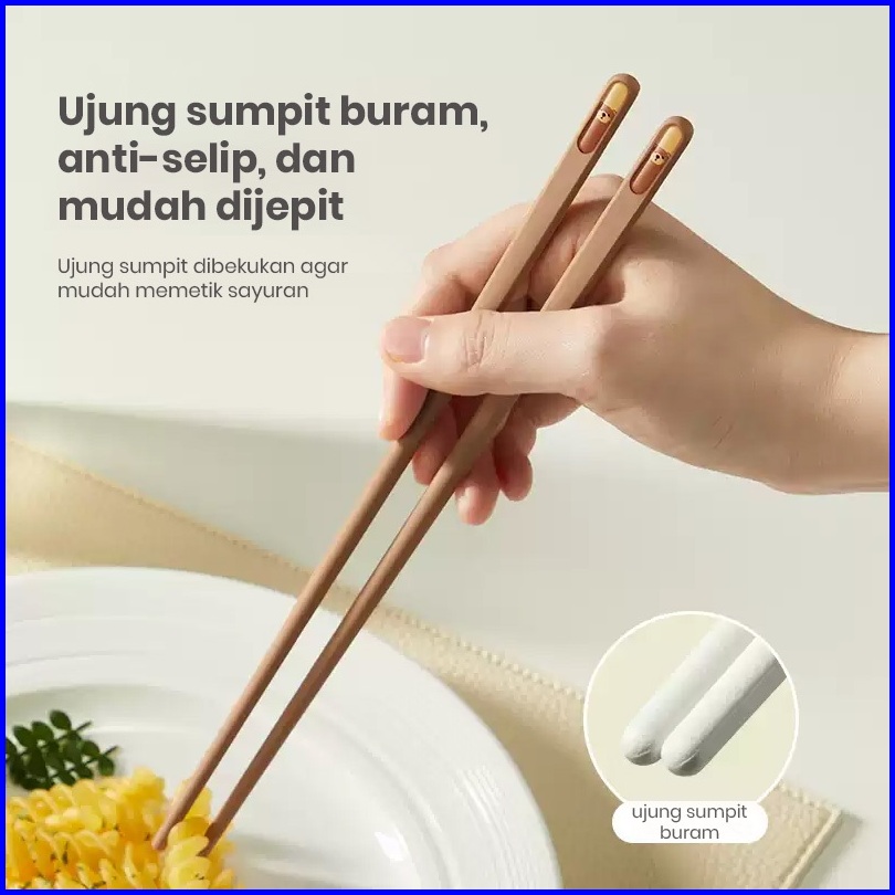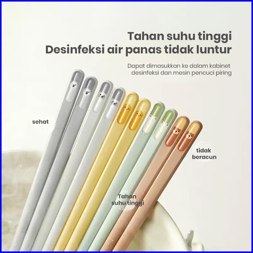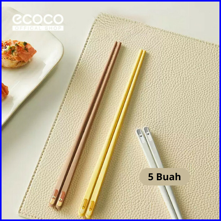 Ecoco Anti Slip Chopstick Cartoon Set Mix 5 Warna - Sumpit Rumah Tangga Paduan Sumpit Tahan Suhu Tinggi Antibakteri Dan