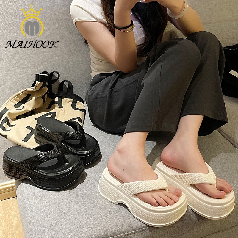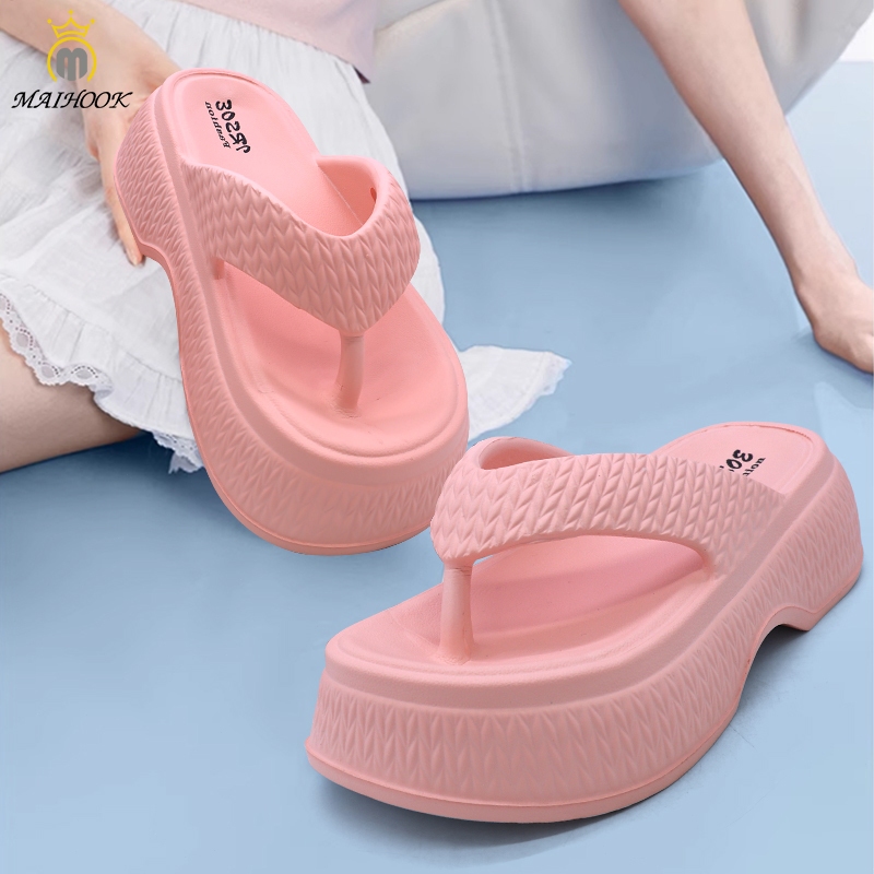 MAIHOOK Sandal Wanita Jepit Jelly Wedges Korea Style Terbaru 5.5cm Casual Premium Sendal Slop Wanita Dewasa Jelly Cewek Anti Slip empuk EVA
