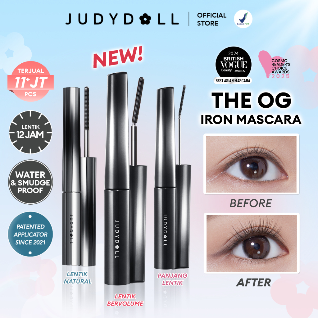 (BARU) Judydoll Iron Mascara Viral (Maskara Besi Waterproof, Smudgeproof, Anti Clumpy, Hasil Lentik Natural Tahan Lama 12 Jam)