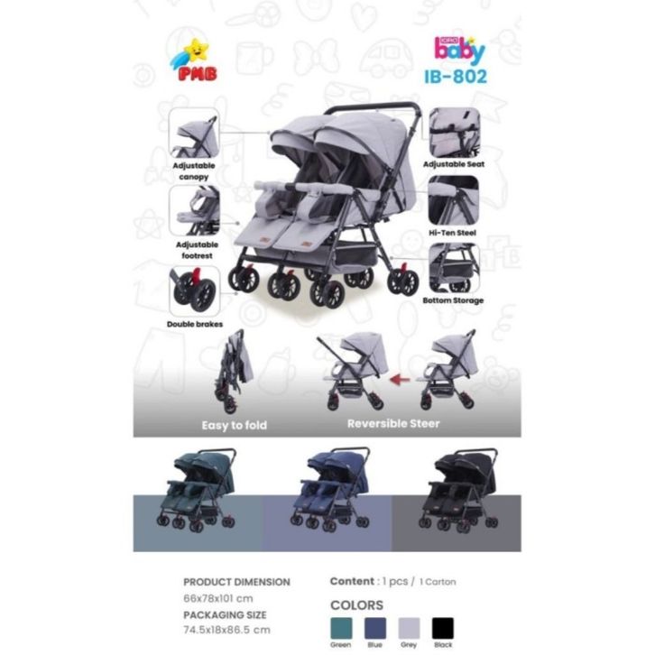 FREE GIFT PROMO TURUN HARGA....Baby Stroller PMB IORA Baby IB 802 Bolak Balik Kereta Dorong Kembar Bayi IB 802 ib802