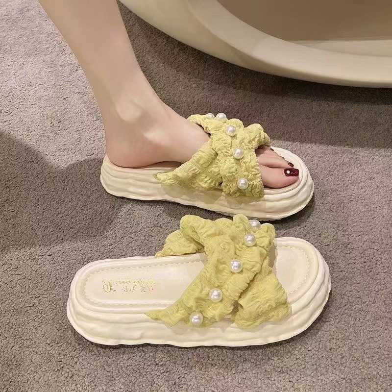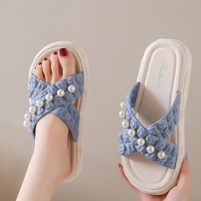 Muzy Sandal Wanita Flat Korean Tali Silang Mutiara Anti Slip Flat Shoes Wanita Sendal Wanita HSN218
