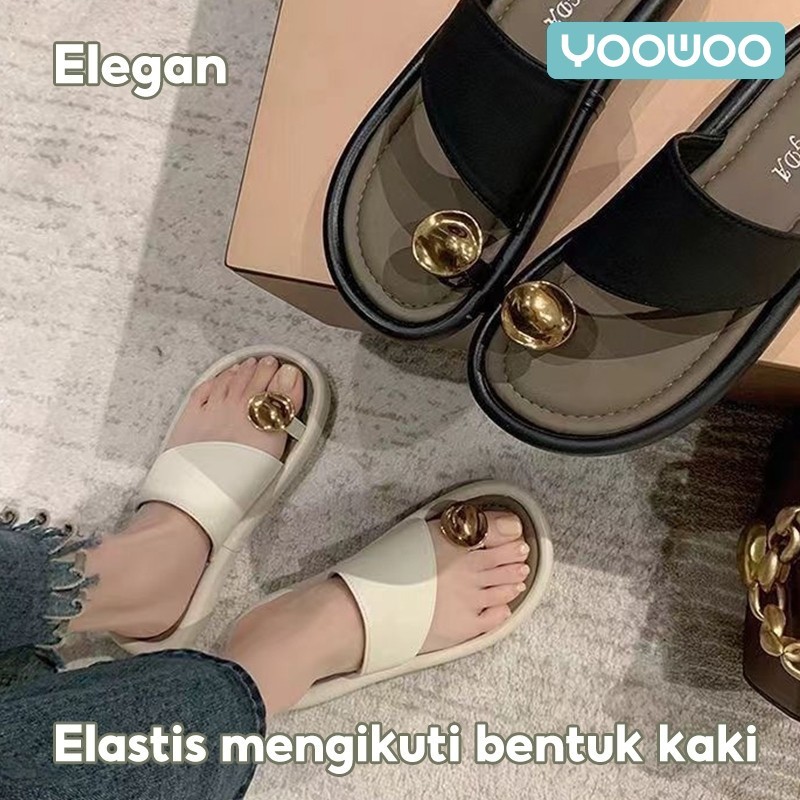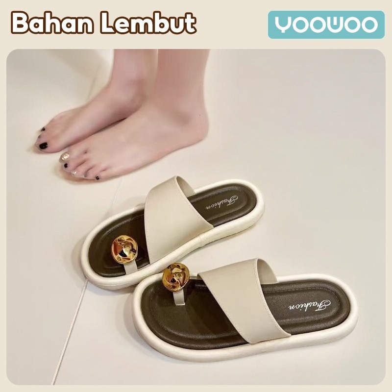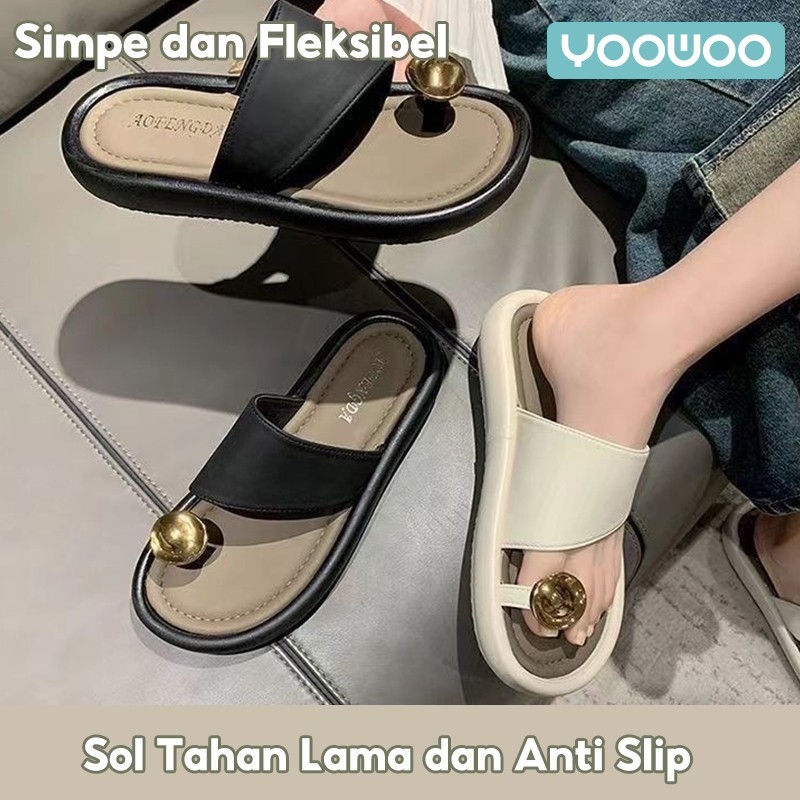 YooWoo Sandal Untuk Wanita Modis Berlian Imitasi Sandal Pantai Bersol Tebal