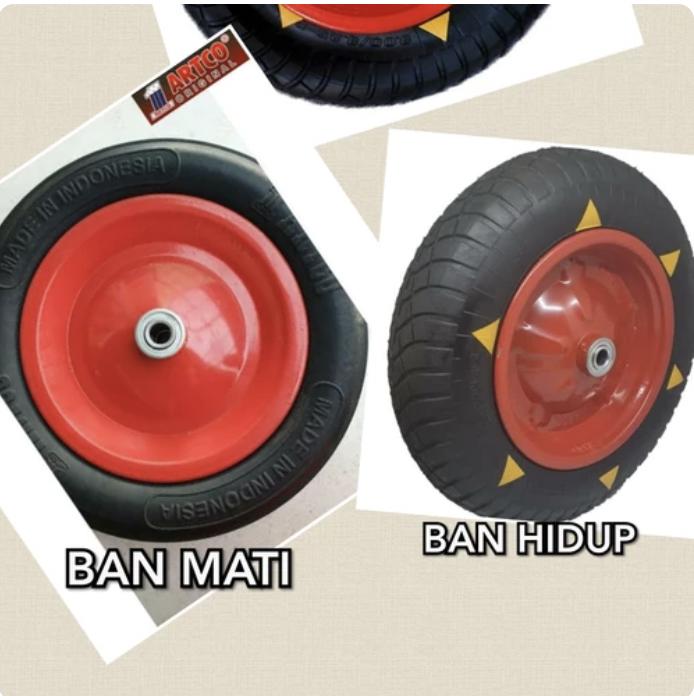 Artco Ori Gerobak Sorong Dorong Pasir Cor Original Hijau Banana Green 4 Kubik Kapasitas 75X50X25Cm Dimensi 14 Inch Roda