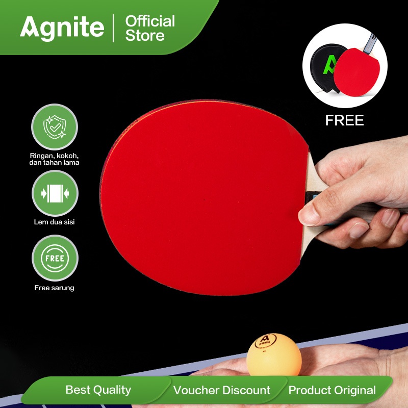 Agnite Bet Pingpong Raket Tenis Meja isi 1 pcs Gratis Sarung FH214