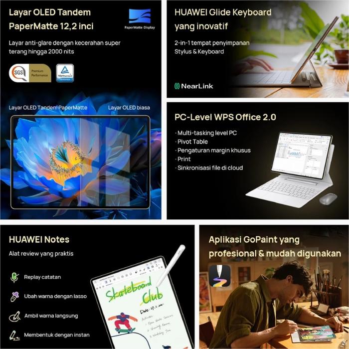 Huawei Matepad Pro 13.2 Inch 12/512 Gb Papermatte Display Tablet Paket Lengkap 12/512 Gb G0Ldd Dengan Layar Flexible Ole