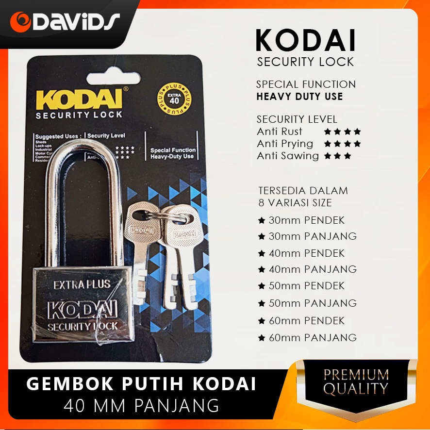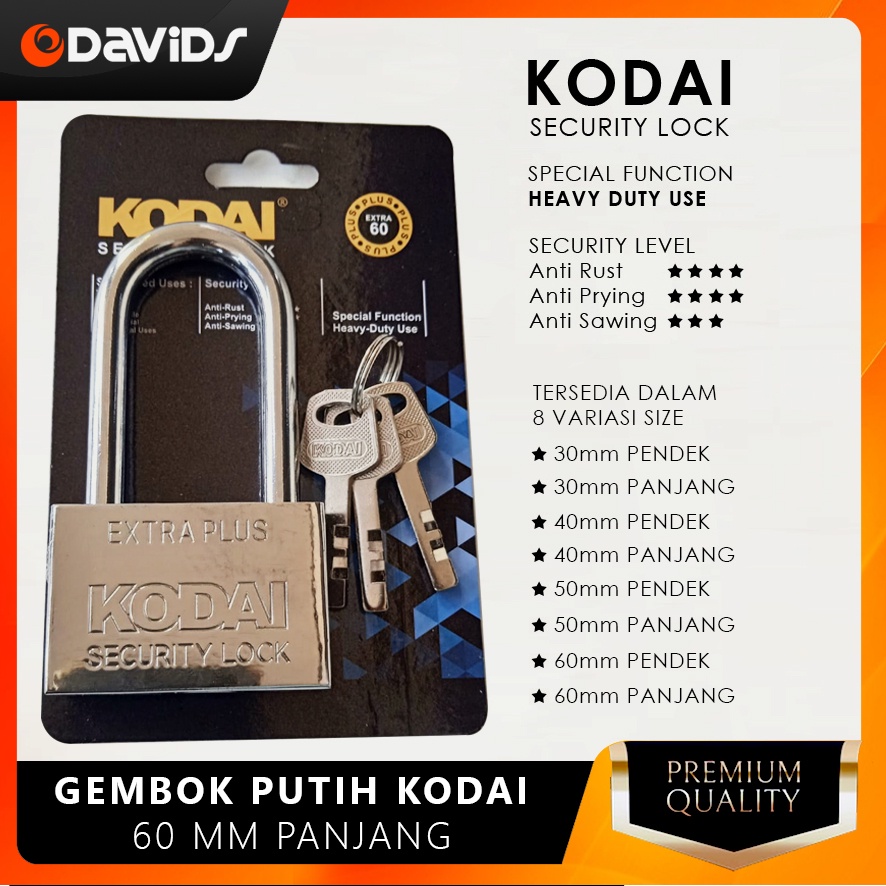 Gembok Pagar Anti Karat Air Maling Leher Panjang Jumbo Kamar Rumah Pintu Motor Stainless Stenlis Kodai Putih