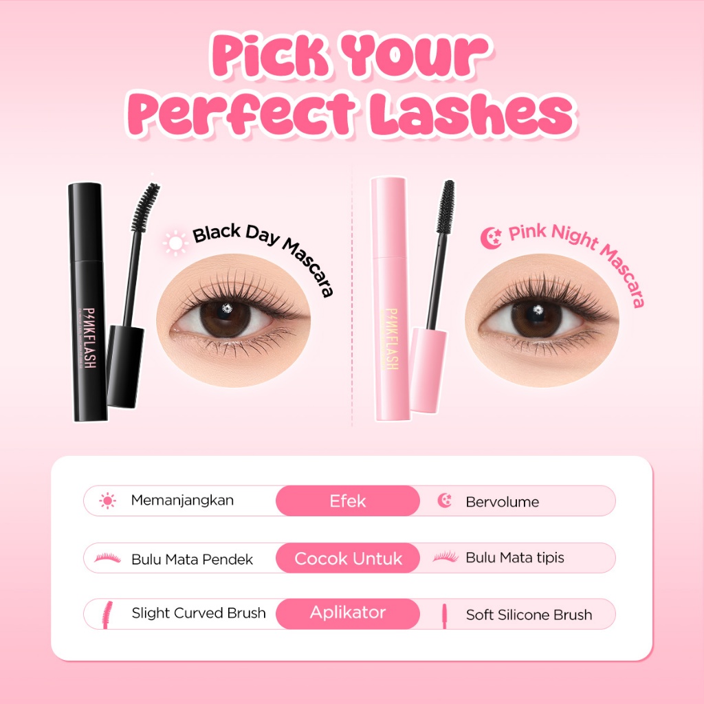 PINKFLASH Day & Night Maskara Lengthening Volume Tahan air Tahan lama Mascara