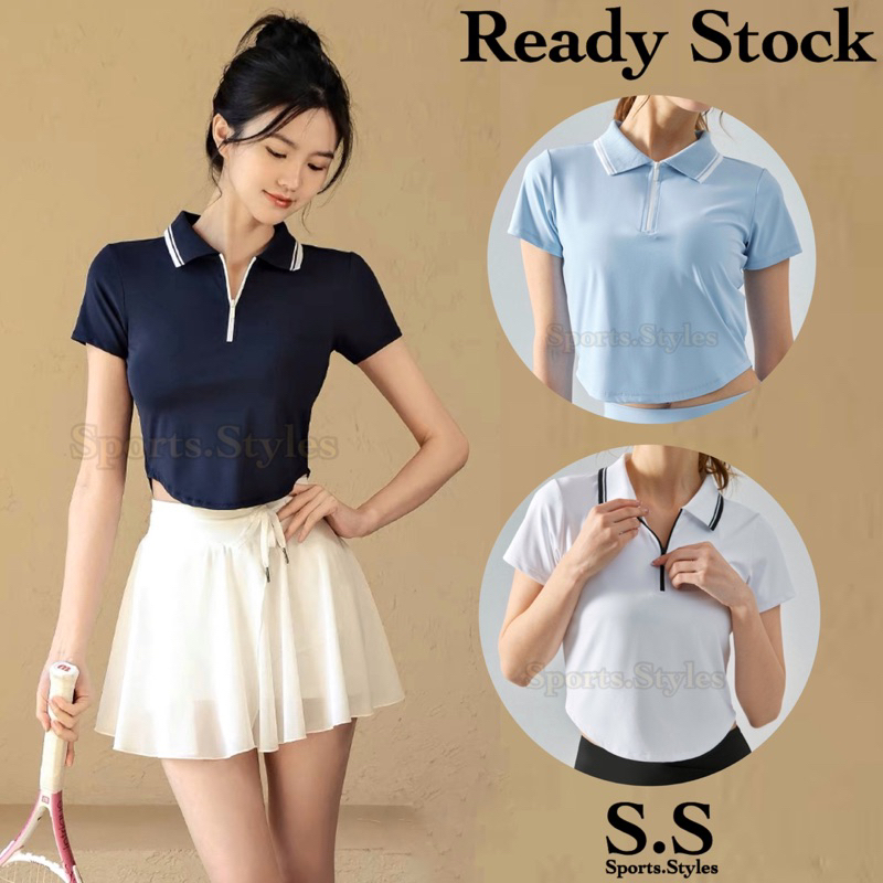 Sports.Styles.id Baju crop kerah Dst530 wanita olahraga gym fitnes