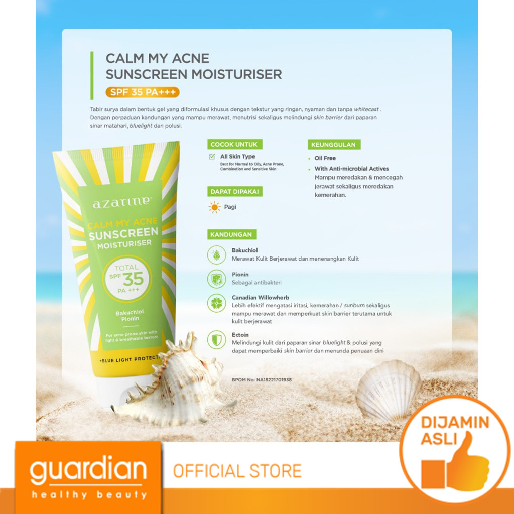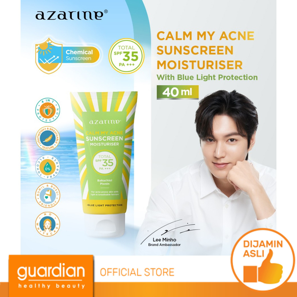 Azarine Calm My Acne Sunscreen Moisturiser SPF35 PA+++ 40gr / Sunscreen Gel Untuk Kulit Berminyak Berjerawat Sensitif 40ml