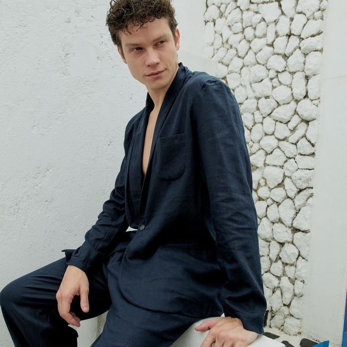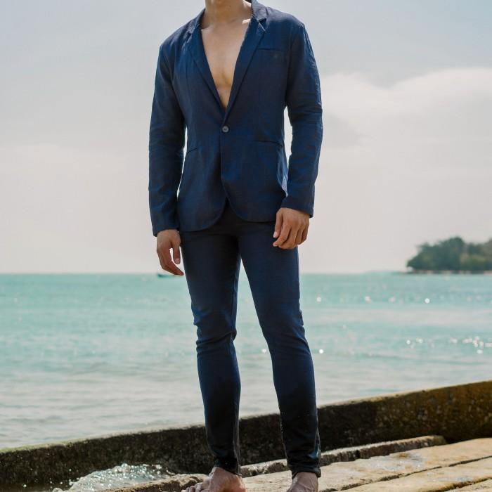Remedy Outer Linen Set Pria Panjang Warna Biru Navy - Durban Blazer Set - S, Relax Pants