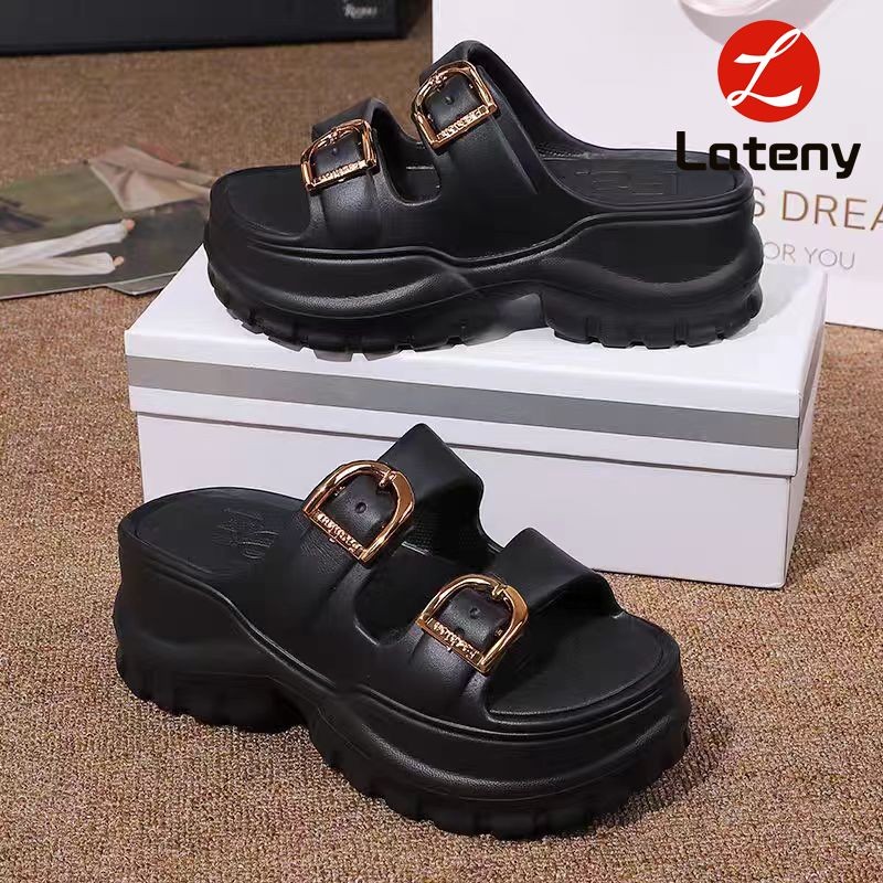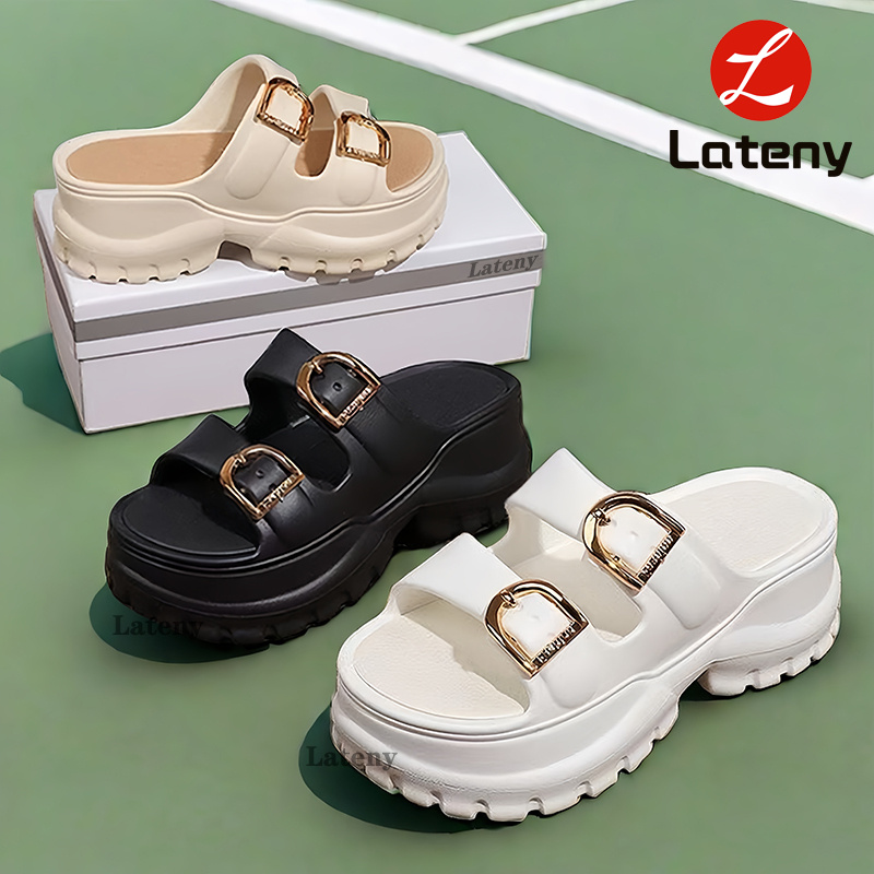 Lateny Sandal Selop Wanita Model Korea Ready Stock Tipe Wedges Anti Air dan Anti Selip