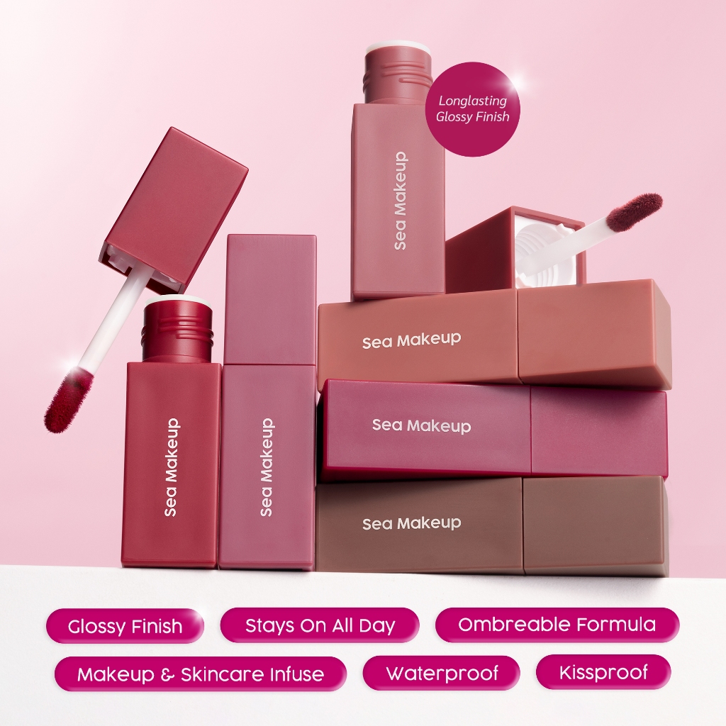 Sea Makeup Lacquer Shake Lip Ink Longlasting – Glossy Finish Lip Cream & Liquid Lipstick, Liptint Waterproof, Transferproof & Tahan Lama