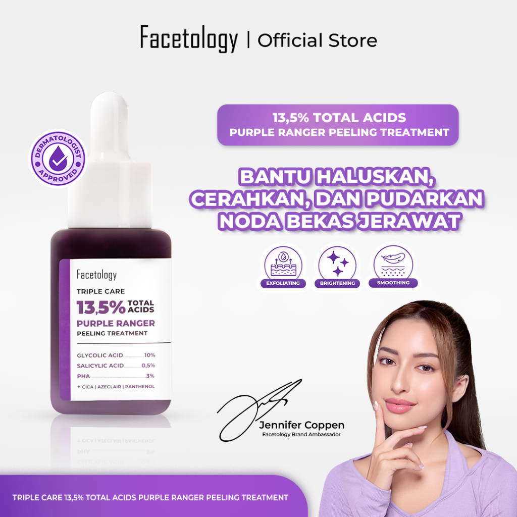 FACETOLOGY Triple Care 13.5 PERSEN Total Acids Purple Ranger Peeling Treatment Serum mengandung glycolic sebagai exfoliating bantu bersihkan wajah dan komedo