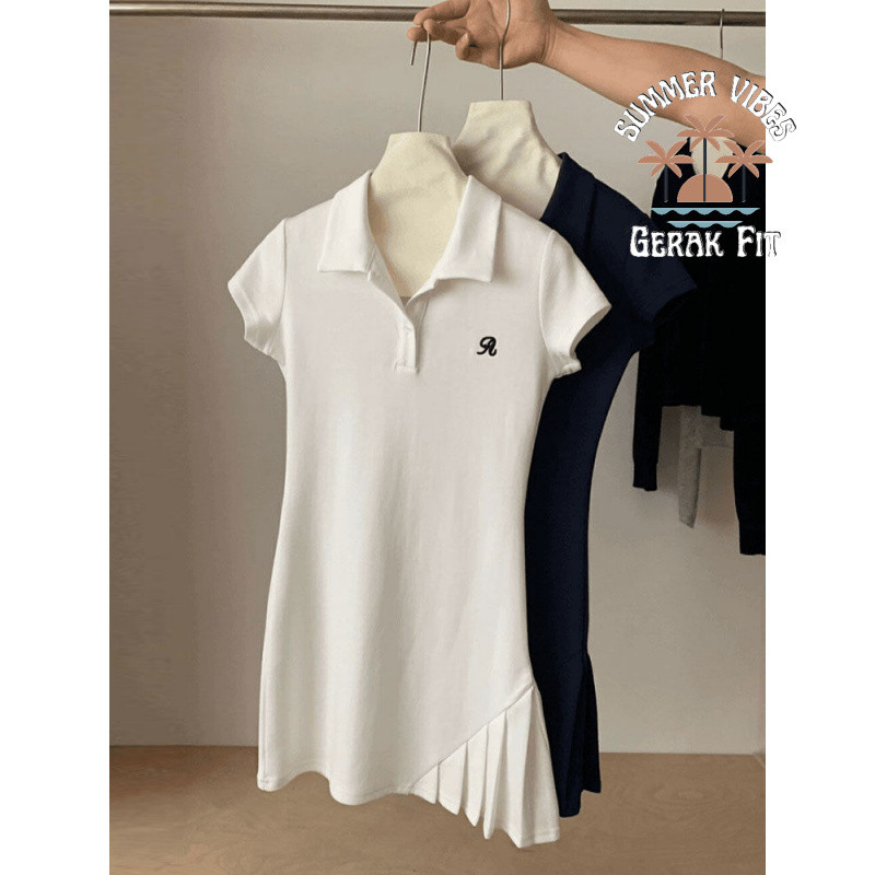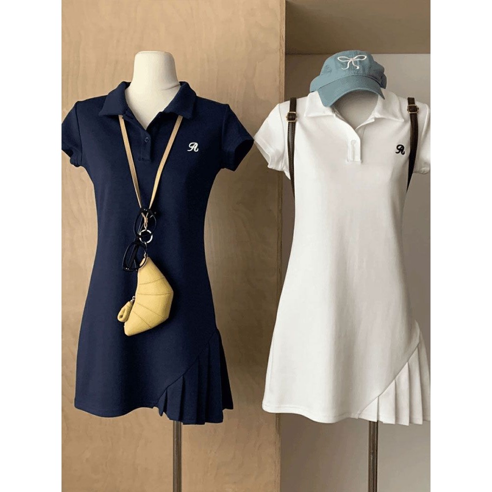 Casual Sports Tennis Dress Women's Fashion Elegant Embroidery Pleated Skirt
