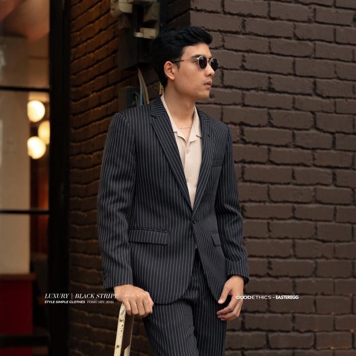 Goodethics - Luxury Jas Pria Slimfit | Blazer Motif Stripe | Pattren - Black Stripe, S